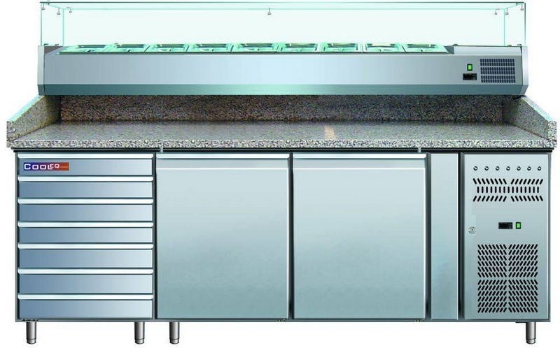 Стол для пиццы Cooleq PZ2610TN-VRX380 — рабочее место пиццайоло с гранитной столешницей и встроенной витриной