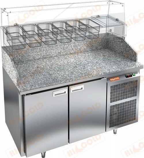Стол для пиццы Hicold PZ3-11/GN — охлаждаемый рабочий стол с гранитной поверхностью и возможностью установки витрины