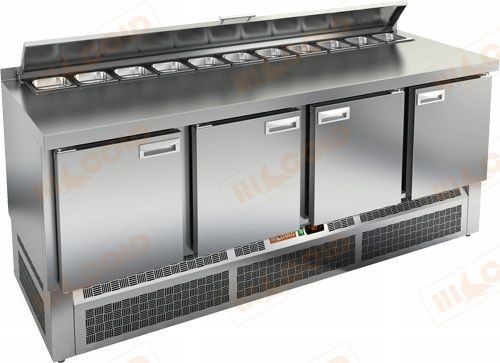 Стол холодильный для салатов Hicold SLE2-1111GN (1/6) — четырёхдверный охлаждаемый стол с ячейками под GN 1/6 для ресторанов и салат-баров