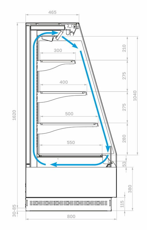 Минигорка холодильная Carboma F16-08 VM 1,0-2 — компактная витрина для торгового зала с динамическим охлаждением