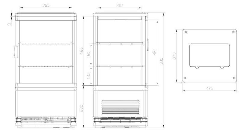 Витрина рассчитана на небольшие заведения или точки с ограниченной площадью: кофейни, кондитерские, магазины при отелях, буфеты. Компактные габариты 428×386×810 мм позволяют разместить её на баре, стойке ресепшн или кассовом узле. Закрытая конструкция с замком подходит для витрин самообслуживания, где важно ограничить свободный доступ к содержимому.