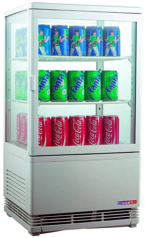 Витрина холодильная Cooleq CW-58 White — компактная настольная модель с динамическим охлаждением для напитков и кондитерских изделий