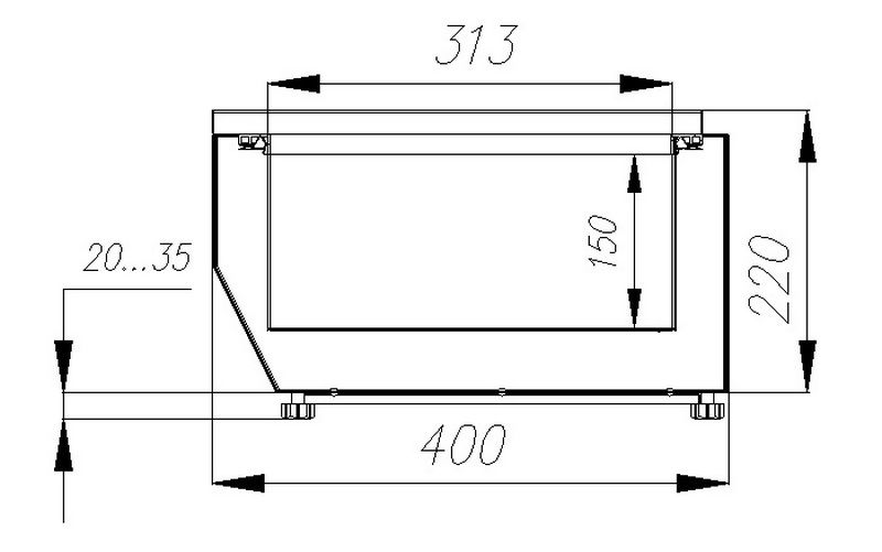 Корпус и экспозиционная поверхность выполнены из нержавеющей стали. Пенополиуретановая теплоизоляция снижает теплообмен с окружающей средой и помогает поддерживать заданную температуру без лишней нагрузки на компрессор. Охлаждение статическое — без принудительной циркуляции воздуха, что исключает заветривание продуктов. Управление — электронный блок Carel с точной регулировкой температуры. Хладагент R600a. Ножки регулируются по высоте, что упрощает выравнивание витрины на неровных поверхностях.