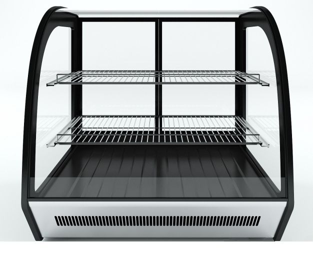 Витрина устанавливается на прилавок или барную стойку в кафе, кондитерской, пиццерии, суши-баре, гостиничном лобби. Стеклянный корпус с подсветкой работает как витринный акцент: клиент видит продукт сразу при подходе к кассе. Формат особенно эффективен для импульсных покупок — готовые порционные десерты, завёрнутые роллы, бутерброды. В нижней части витрины предусмотрена дополнительная гладкая выкладочная поверхность.