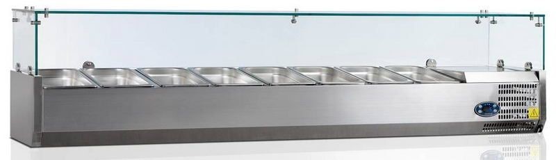 Витрина холодильная настольная Tefcold VK33-180 — линейная саладетта из нержавейки для демонстрации закусок и салатов