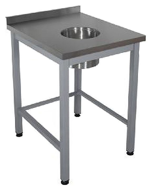 СБ-241/606 — простое и функциональное решение для организации зоны сбора отходов без лишних конструктивных элементов: нержавеющий каркас, усиленная столешница с отверстием и регулируемые ножки.