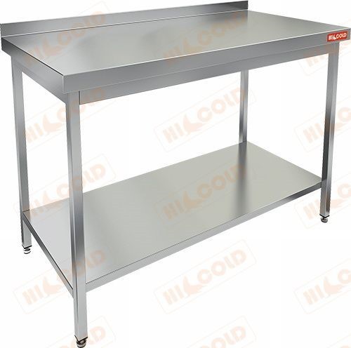 Стол пристенный Hicold НСО-12/7БП — производственный стол с бортом и нижней полкой для кухни общепита