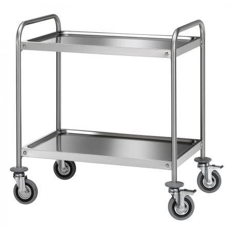 ТС-3/2 — практичная рабочая тележка без лишних конструктивных решений: сталь AISI 304, две полки и колёса с тормозом. Этого достаточно для ежедневной эксплуатации в заведениях общепита и гостиничном хозяйстве.
