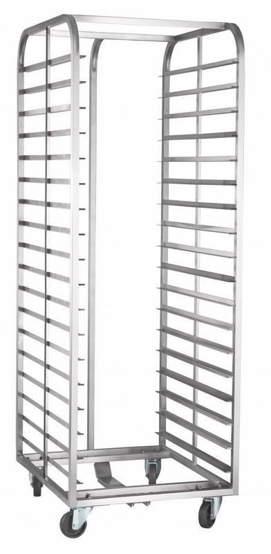 Перед заказом уточните шаг и размер направляющих под ваши противни — тележка рассчитана на противни определённого формата, и несовпадение габаритов сделает её непригодной для вашего парка оснастки. Термостойкость колёс рассчитана на температурные режимы пекарских шкафов, но точный допустимый диапазон стоит уточнить у поставщика. При работе на мокром или скользком полу поворотные колёса требуют аккуратного управления при полной загрузке.