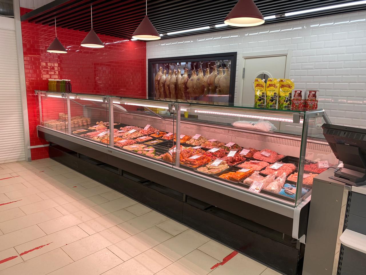 Магазин получил цельную витринную зону, где товар хорошо читается, продавцу удобно работать, а холодильная система работает предсказуемо и стабильно. Витрина выглядит аккуратно, ассортимент разложен логично, а демонстрация туш дополнительно усиливает доверие к свежести и формату “мясной у дома”.