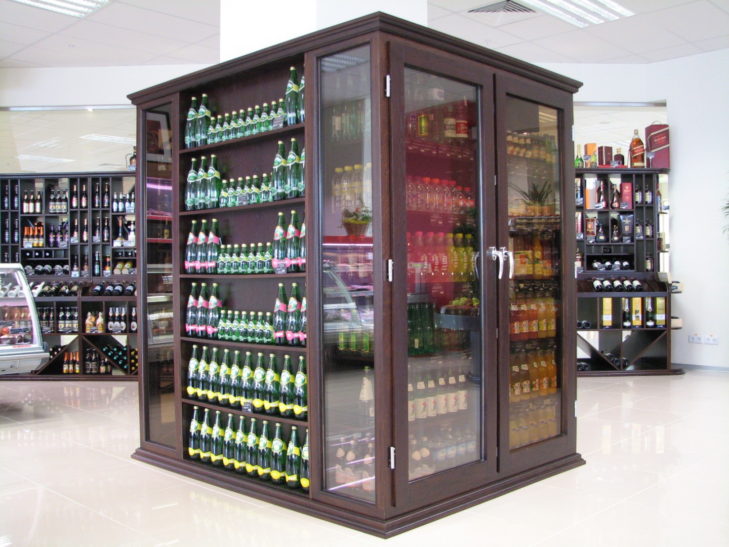 - витринные шкафы с остеклением под напитки и “премиальную” выкладку;