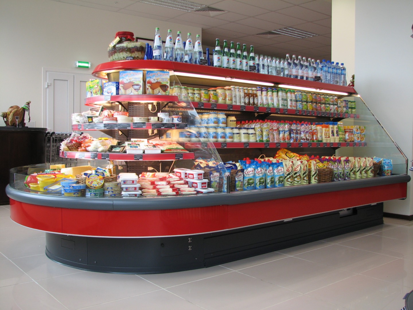 - пристенные холодильные витрины (“горки”) для фасованной продукции, чтобы покупатель мог быстро собрать корзину без очереди;