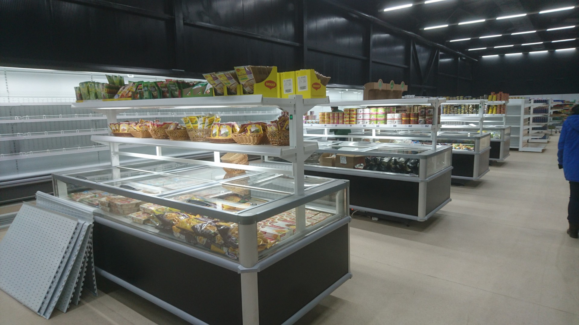 Магазин получил единый холодильный контур и полноценную торговую линию: пристенные горки для объёмной выкладки, островные решения для заморозки, прилавочную гастрономию для продажи “через витрину”, а также шкафы и рабочие зоны для внутренней логистики. Оборудование готово к работе в формате супермаркета: удобно выкладывать товар, поддерживать порядок и обслуживать технику.