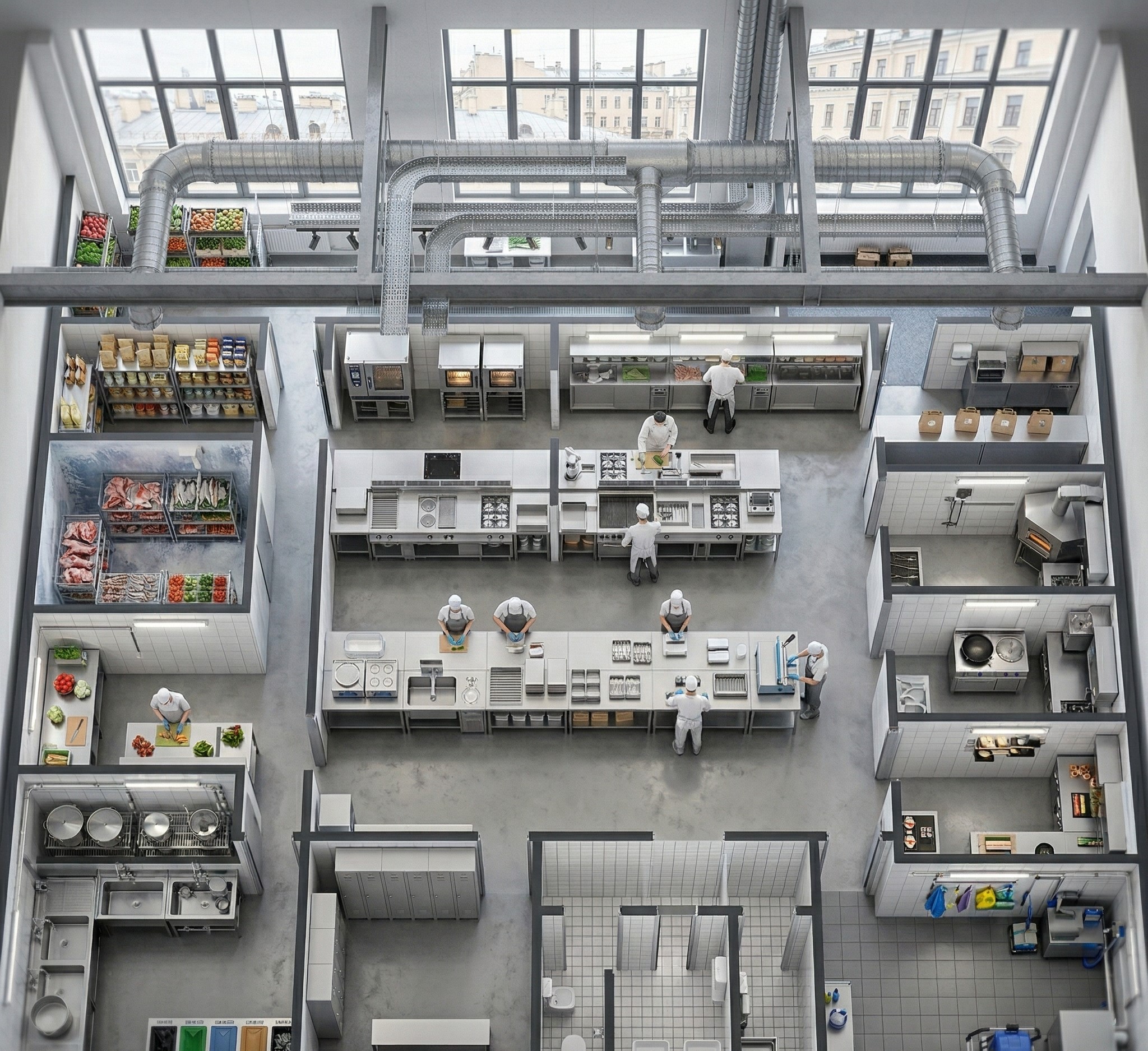 Фабрика-кухня (кейтеринг / столовые) 200–500 м² 1000–3000 порций