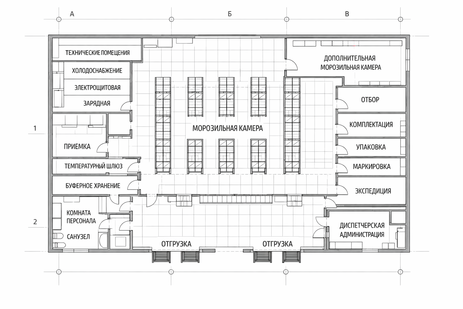 - Камера при цехе: приём сырья, заморозка, кратковременное хранение.